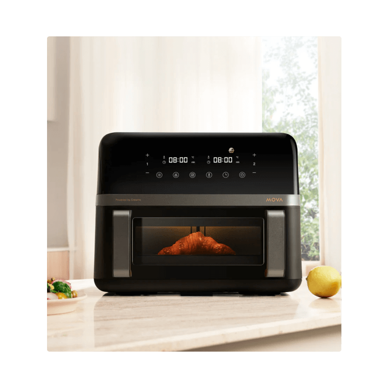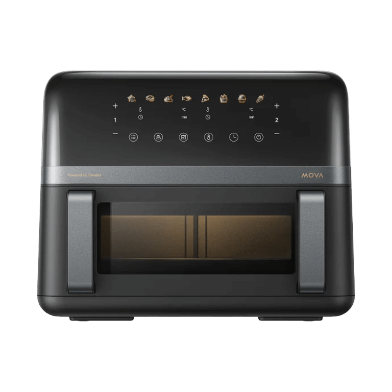 MOVA AeroChef™ FD20 Pro AirFryer er öflugur 9 lítra loftsteikingarpottur með FlexZone™ körfu sem hægt er að skipta í tvö sjálfstæð 4.5 lítra svæði. Hann er fullkomin til að elda hollari máltíðir fyrir alla fjölskylduna, sparar orku og tíma miðað við hefðbundna ofna.