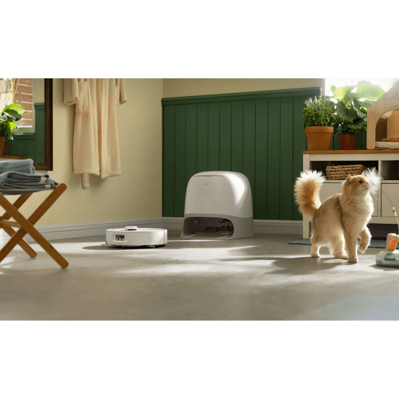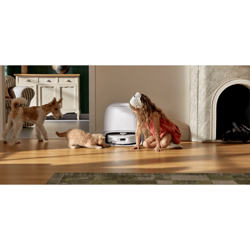 Vélin er með gæludýravæna snjallgreiningu sem þekkir gæludýr, getur tekið myndir af þeim og sent í Roborock appið og getur jafnvel leitað að þeim. Hún getur einnig lækkað sogkraft og burstahraða til að trufla ekki gæludýr.