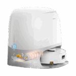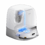 Sjálftæmingarstöðin tæmir rykhólfið í rykpoka sem dugar í allt að 65 daga án handvirkrar tæmingar. Hún fyllir sjálfkrafa á hreina vatnstankinn í ryksugunni og þrífur og þurrkar moppuna með heitu vatni og lofti.