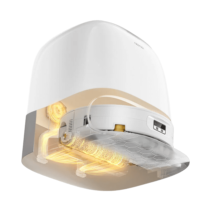 Sjálftæmingarstöðin er miðstöð hreinsunarinnar, hún tæmir sjálfkrafa rykhólfið í 2.5 L rykpoka, fyllir á hreina vatnstank ryksugunnar, þrífur moppuna með 75°C heitu vatni og þurrkar hana með 55°C heitu lofti til að koma í veg fyrir myglu og vonda lykt.