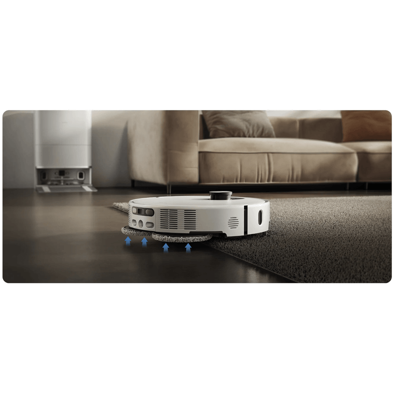 Vélmennið greinir teppi sjálfkrafa, lyftir moppupúðanum um 15 mm til að koma í veg fyrir að teppið blotni og eykur sogkraft á teppum.