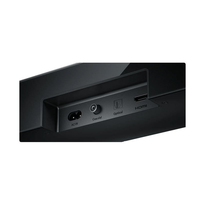 Hægt er að tengja hljóðstöngina þráðlaust við tæki með Bluetooth 5.3. Einnig er hægt að tengja hana með HDMI (ARC), Optical eða Coaxial snúru. NFC virkni gerir það auðvelt að para Android tæki fljótt við hljóðstöngina.